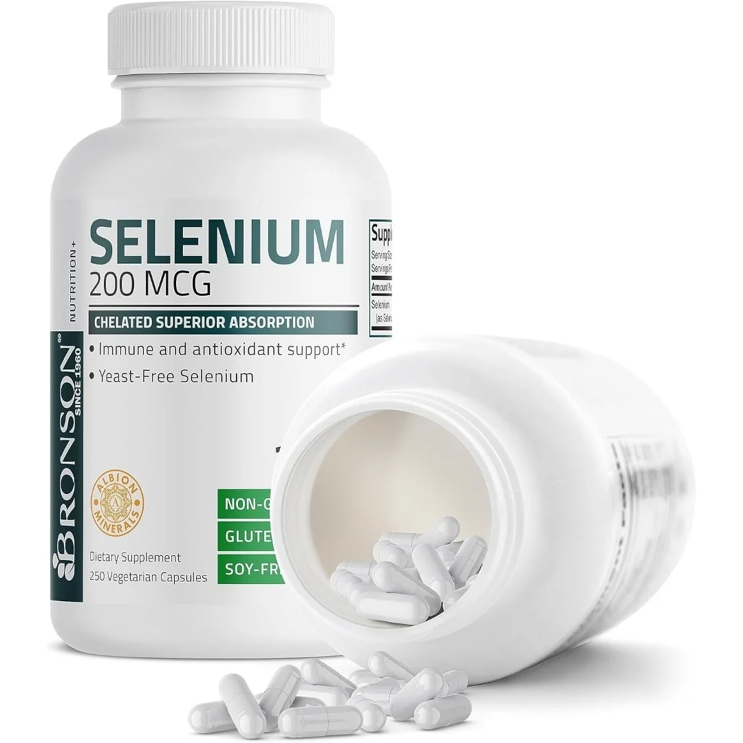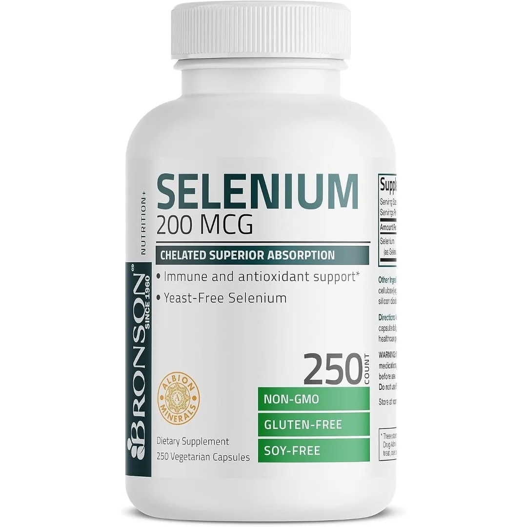 Bronson Selenio 200 mcg para la salud del sistema inmunológico, la tiroides, la próstata y el corazón, complejo de aminoácidos quelados sin levadura