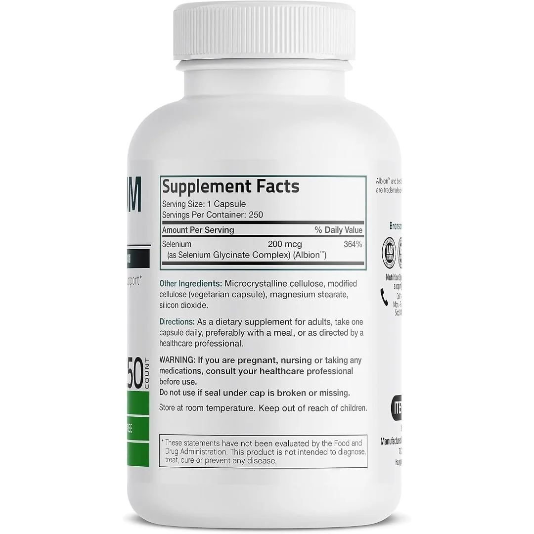 - Selenio de absorción superior quelado: mediante el uso del principal fabricante de minerales quelados (Albion), Selenio 200 MCG de Bronson proporciona una fácil absorción, estabilidad y calidad general. Albion Minerals están respaldados por la ciencia y más de 150 patentes que van desde procesos de fabricación hasta aplicaciones alimentarias.