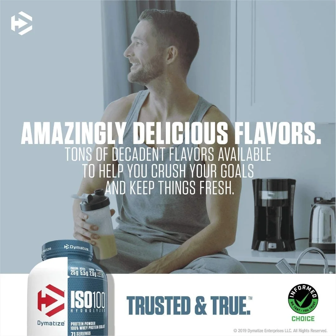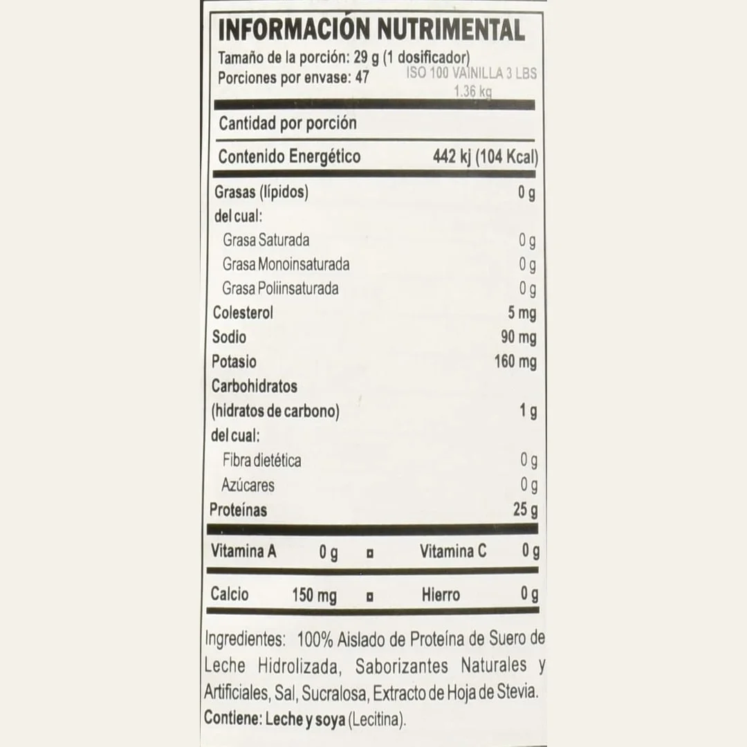 ISO 100 es simplemente combustible de construcción muscular. Cada porción contiene 0.88 oz de proteína y 0.19 oz de BCAA incluyendo 0.10 oz de L-leucina. Conocido mundialmente por su calidad, sabor y pureza, ISO100 se produce con nuestros más altos estándares de calidad. ISO100 se formula utilizando un proceso de purificación de microfiltración de flujo cruzado, de múltiples pasos que preserva importantes fracciones de proteína de construcción muscular mientras elimina el exceso de carbohidratos, grasas, lactosa y colesterol. ISO100 está hecho con fuentes de proteínas prehidrolizadas para garantizar una rápida digestión y absorción.