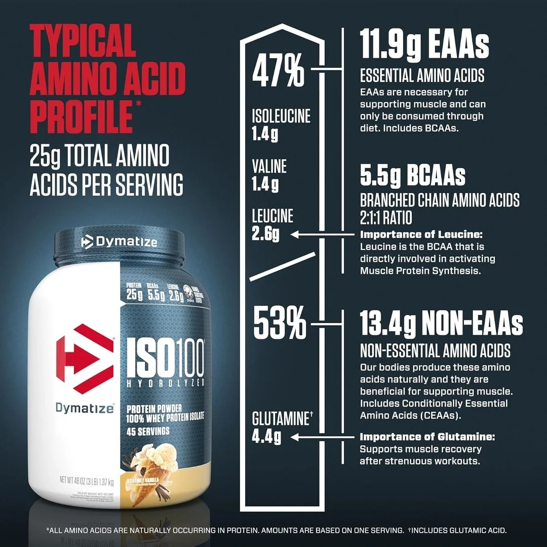 - 3 libras de proteína de vainilla en polvo gourmet Dymatize ISO 100 (43 porciones)