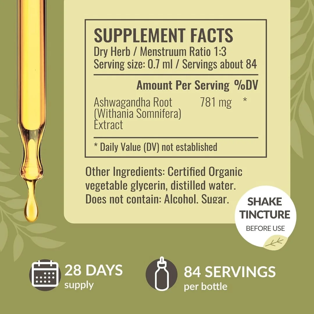 - Solo tres ingredientes: esta tintura de Ashwagandha de soporte tranquilo cuenta con una fórmula simple con solo tres ingredientes: raíz de Ashwagandha, glicerina vegetal y agua destilada. Hecho vegetariano, con una fórmula fácil de digerir y sin aditivos artificiales.