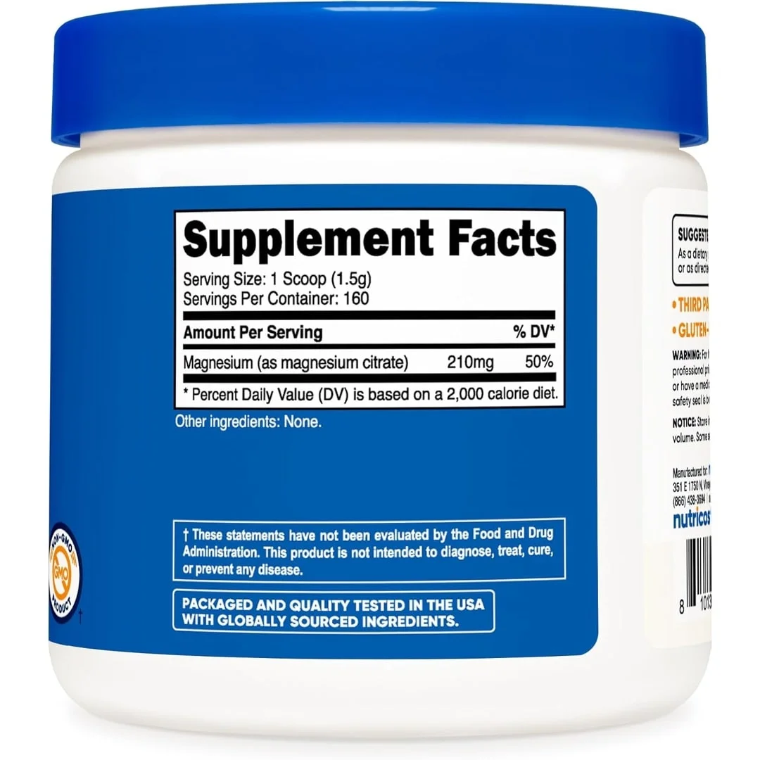 Nutricost Citrato de magnesio en polvo (sin sabor, 8.82 oz)