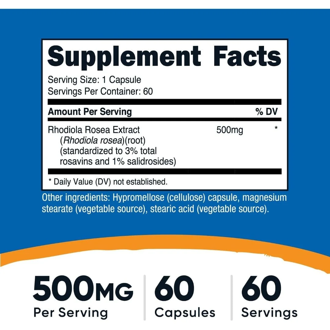 - 500mg de extracto de Rhodiola Rosea por cápsula