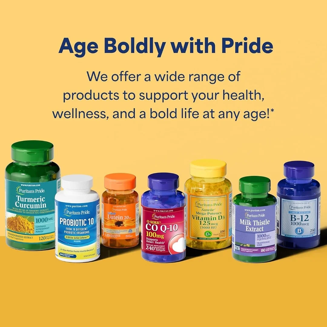 - Envejece audazmente con el orgullo del puritano: durante más de 50 años, Puritan’s Pride ha entregado suplementos de alta calidad a un valor excepcional, lo que te permite priorizar la salud, la vitalidad y la confianza en cada etapa de la vida. Vive con valentía con el Orgullo del Puritano