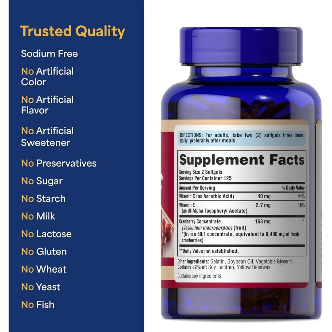 Puritan’s Pride Concentrado de fruta de arándano prémium de 84 mg (4200 mg equivalente) con vitaminas C y E, suplemento dietético para apoyo al sistema inmunológico