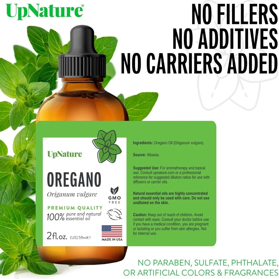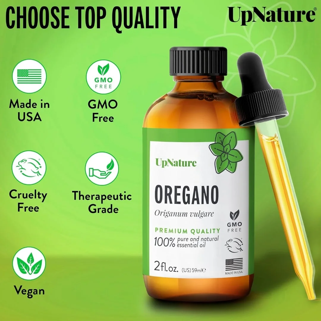 UpNature Aceite de orégano, enorme, de 2 oz, aceite esencial de orégano 100% puro